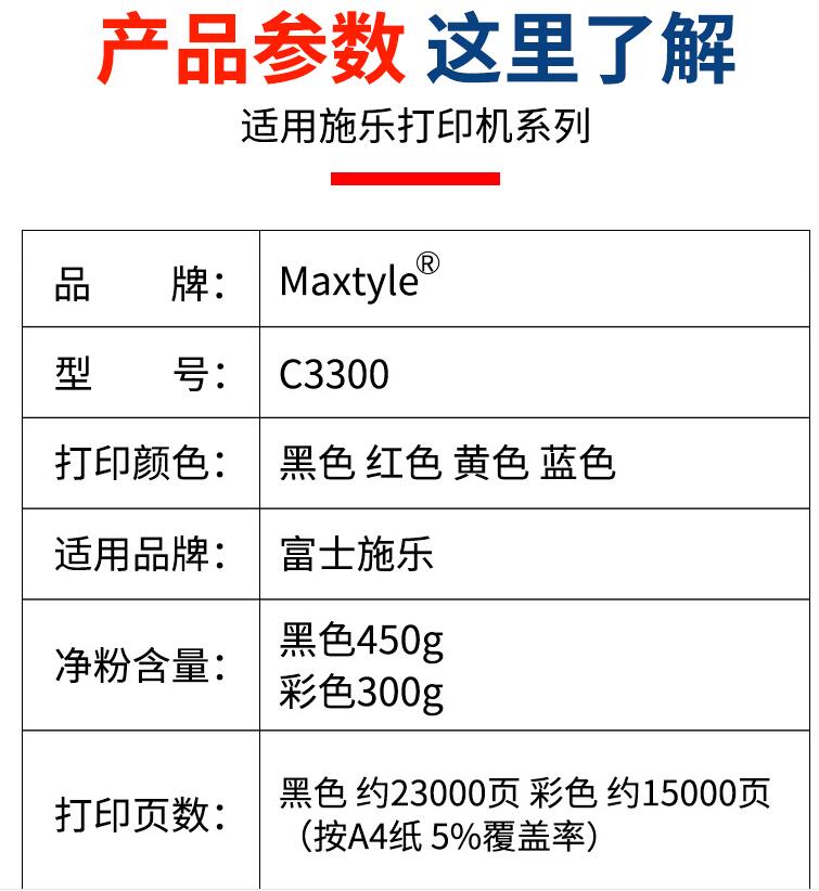 Maxtyle富士施樂Xerox C3300 C3360 C2250 C7425 C7428 C7435碳粉彩色復(fù)印機墨粉打印機粉盒通用易加粉硒鼓粉